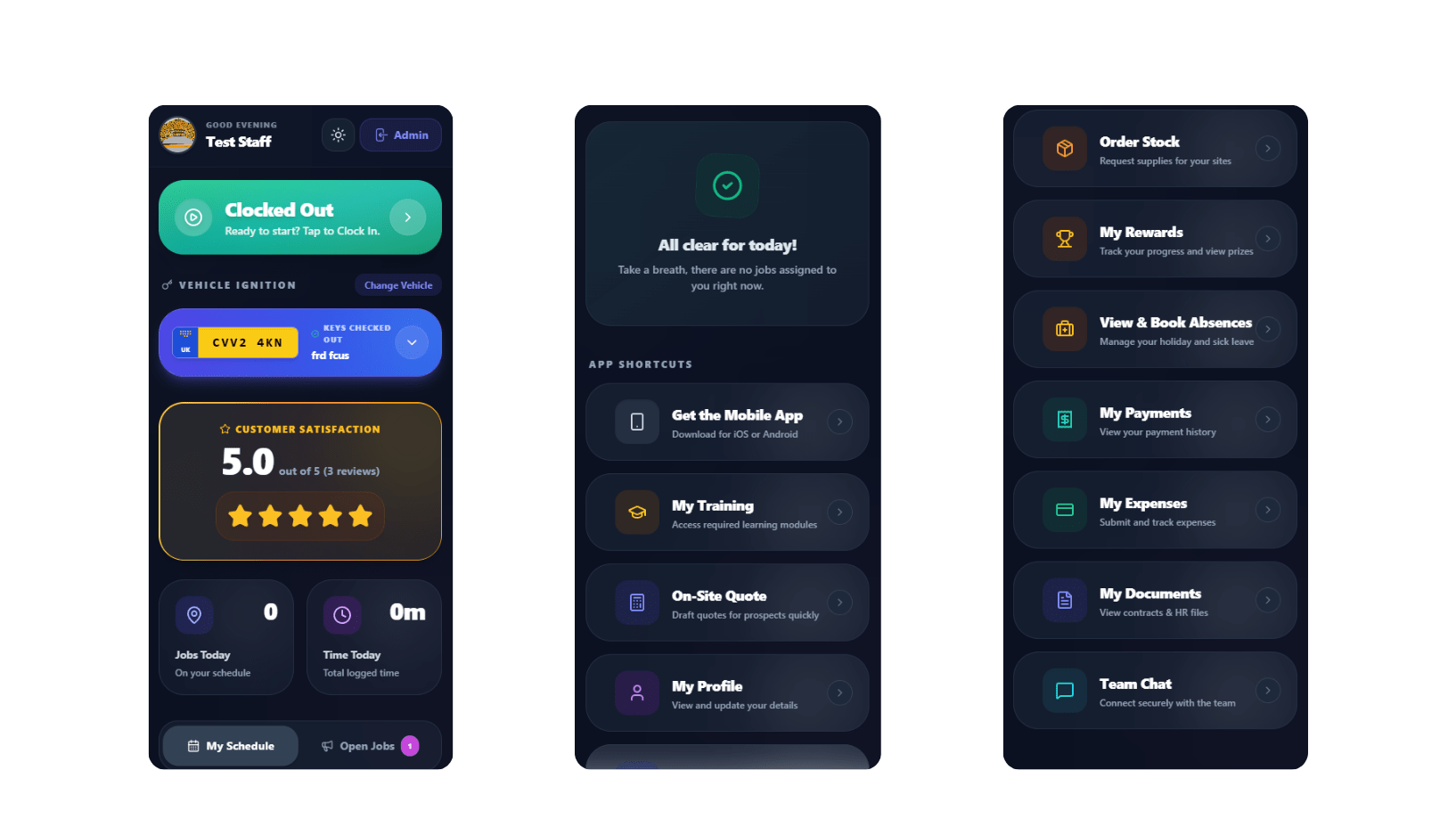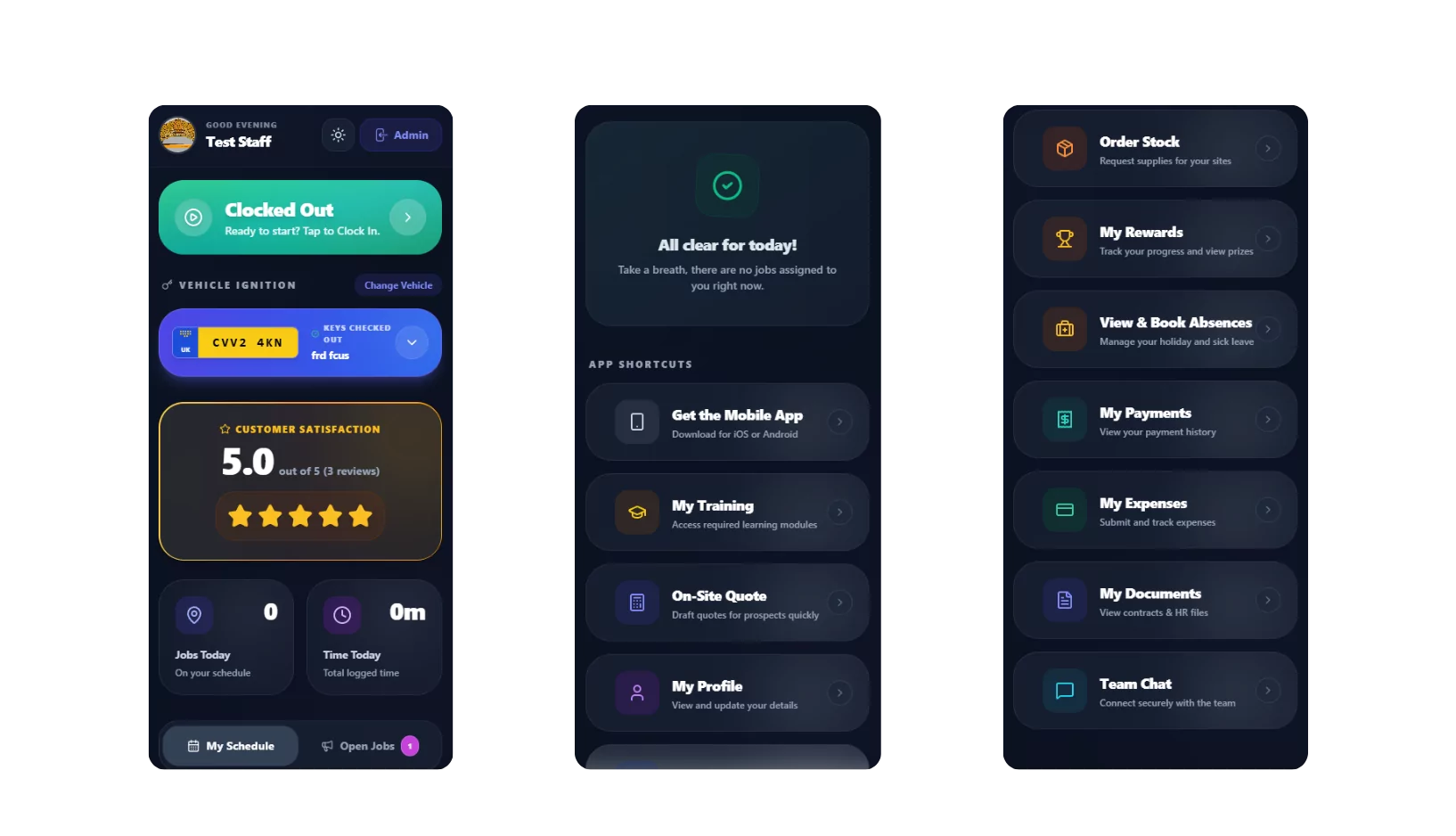 Your team can clock in and out directly on their phones. The app logs their location so you always know they are safely on site.