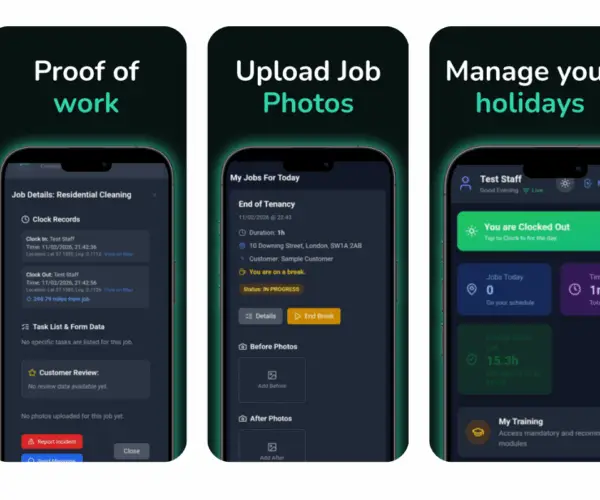 Cleaner accountability software is a specialised solution designed for UK cleaning companies that demand complete transparency and verifiable performance from their workforce. It moves beyond traditional cleaning business software methods, providing tools to ensure every cleaner is exactly where they should be, performing tasks to your exact standards, and completing every job flawlessly. Our cleaning business software is built for companies ready to scale their operations and who need 100% cleaner accountability from their staff. It empowers you to grow confidently, knowing that your cleaning service quality is guaranteed, not just hoped for, even across a large and dispersed workforce.