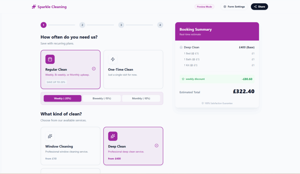 Most cleaning software providers are stuck in 2018. They give you a Standard Field Form (Name, Email, Message) and call it a day.